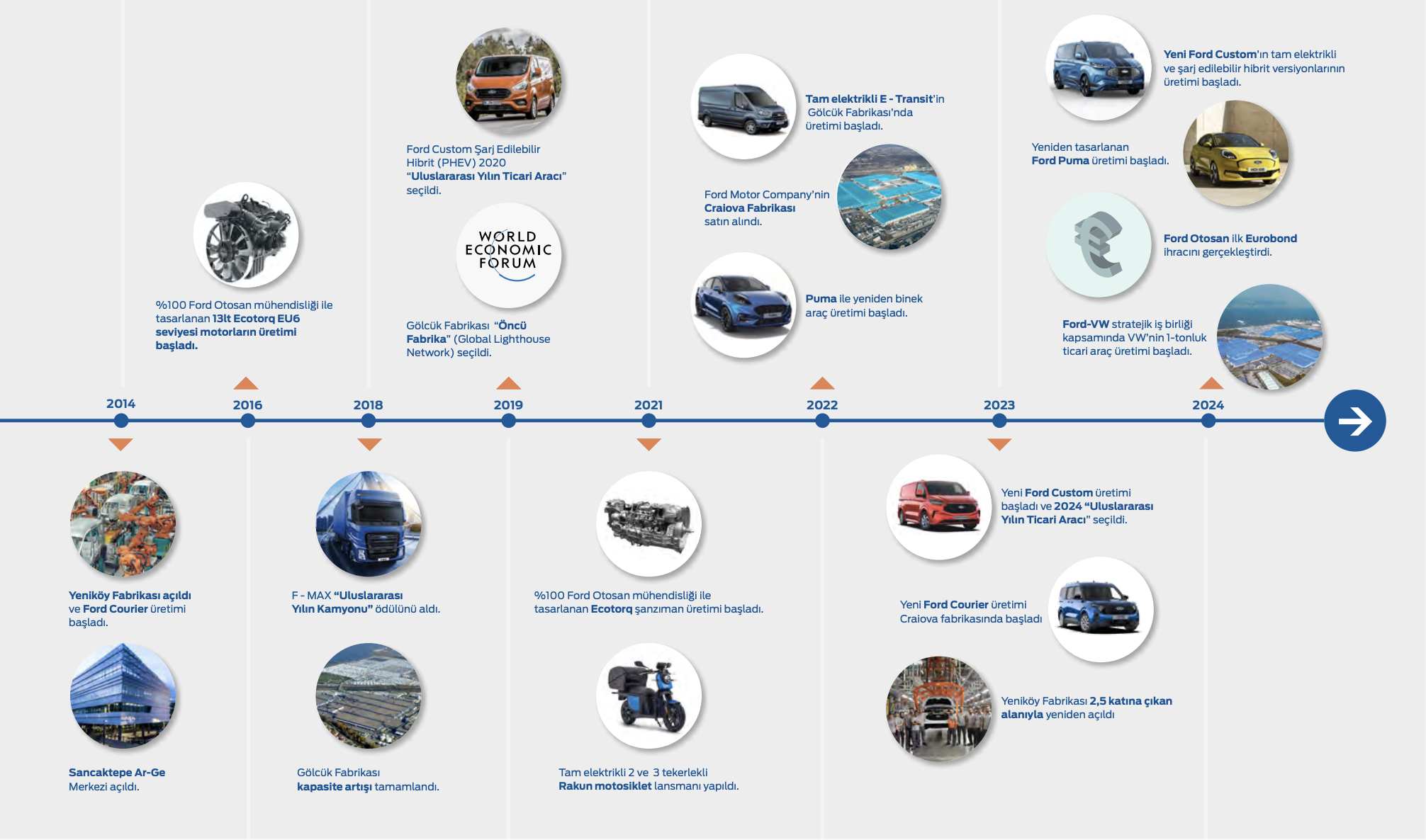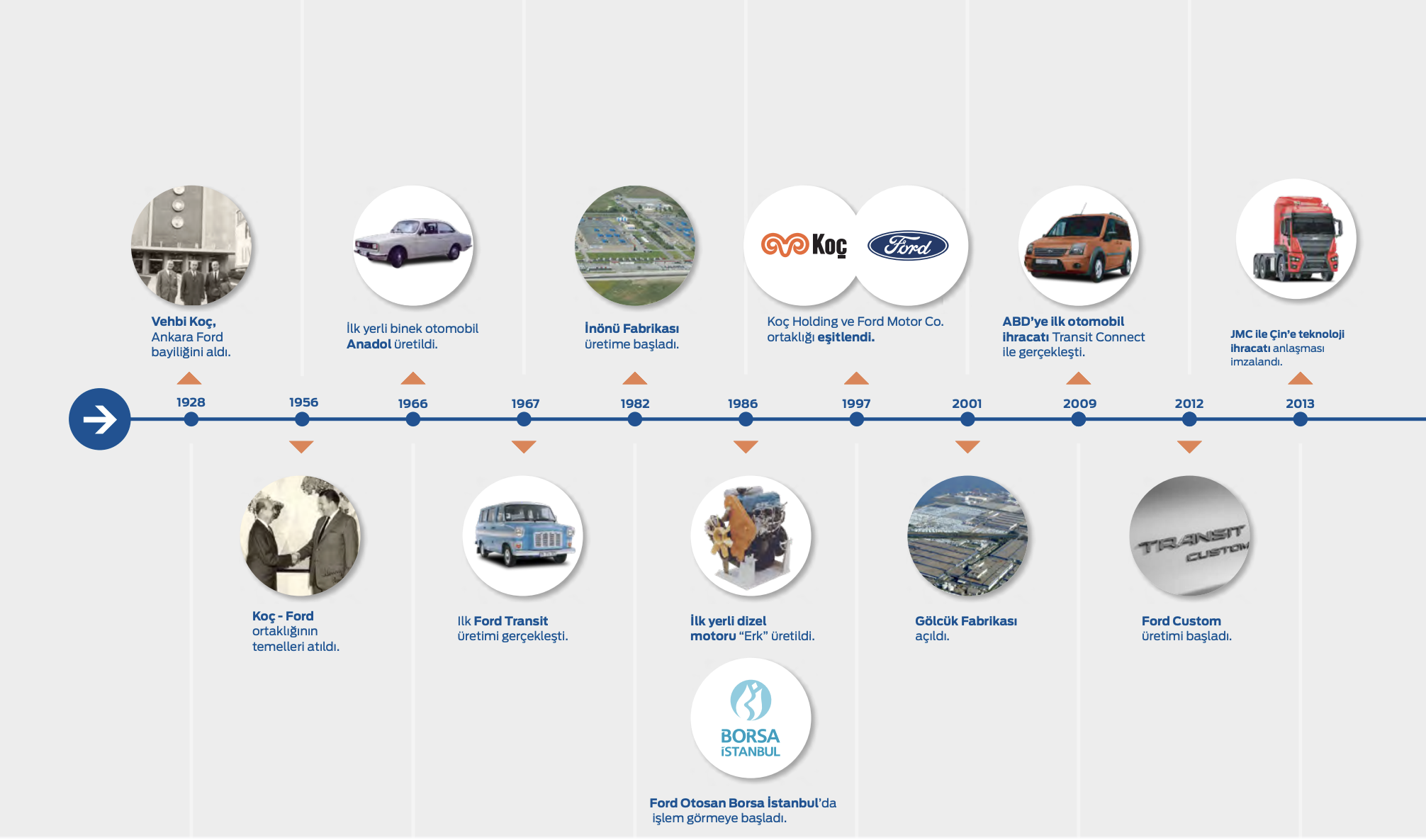 Biz Ford Otosan'ız. 65 yılı aşkın yolculuğumuz ve birikimimizle, Türkiye'nin en güçlü ve en inovatif şirketlerinden biri olarak yolumuza devam ediyoruz. Koç Holding ve Ford Motor Company'nin eşit ortaklığıyla faaliyet gösteriyor ve bugün 5 kıtada 80'den fazla ülkeye ihracat yapıyoruz. Türkiye'nin son 14 yılının otomotiv, son 10 yılının ise tüm alanlarda ihracat lideri olarak bu başarıyı her gün daha da ileriye taşımayı hedefliyoruz.
